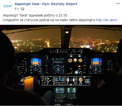 После инцидента с самолетом на мокрой полосе аэропорт "Киев" возобновил работу 14 июня в 23:35.