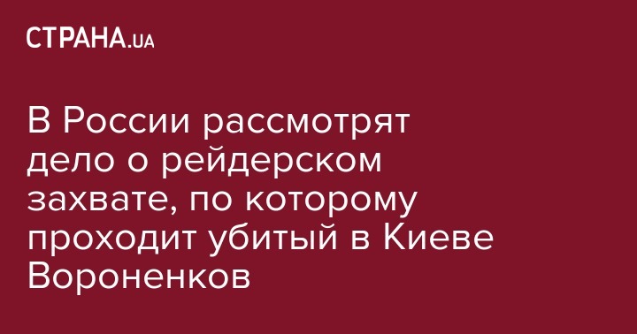 В России рассмотрят дело о рейдерском захвате, по которому проходит убитый в Киеве Вороненков