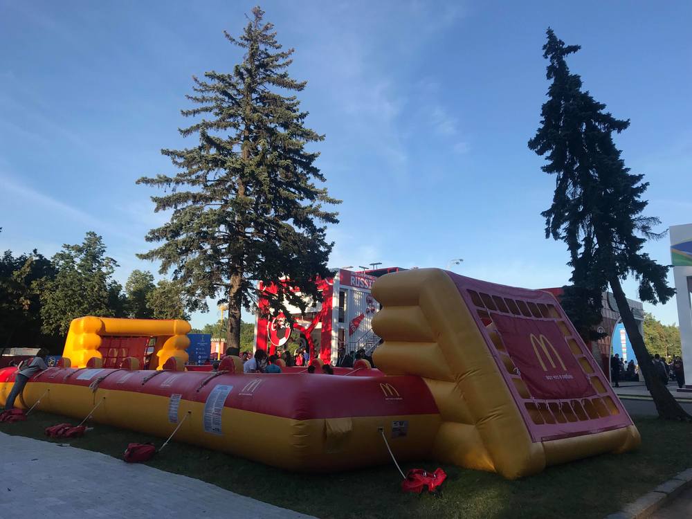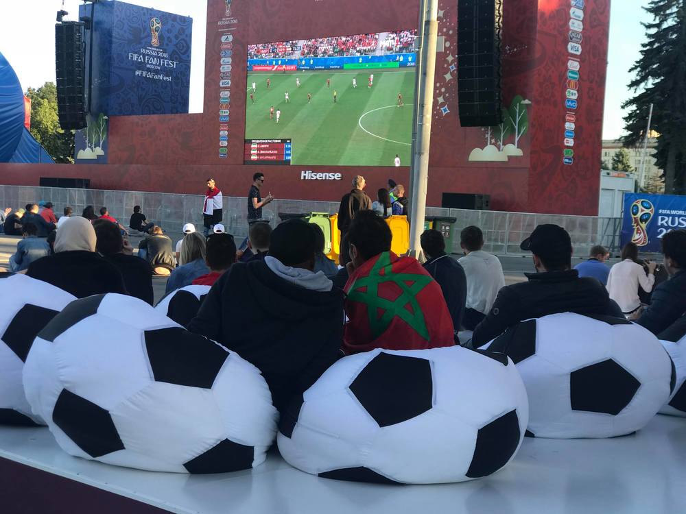 18.21 Корреспондент "Страны" передает из фан-зоны на Красной Пресне в Москве. Фан-зоной это назвать сложно, скорее детская площадка, которая украшена символикой Кубка мира. Дети могут поиграть и почувствовать себя участниками Мундиаля.