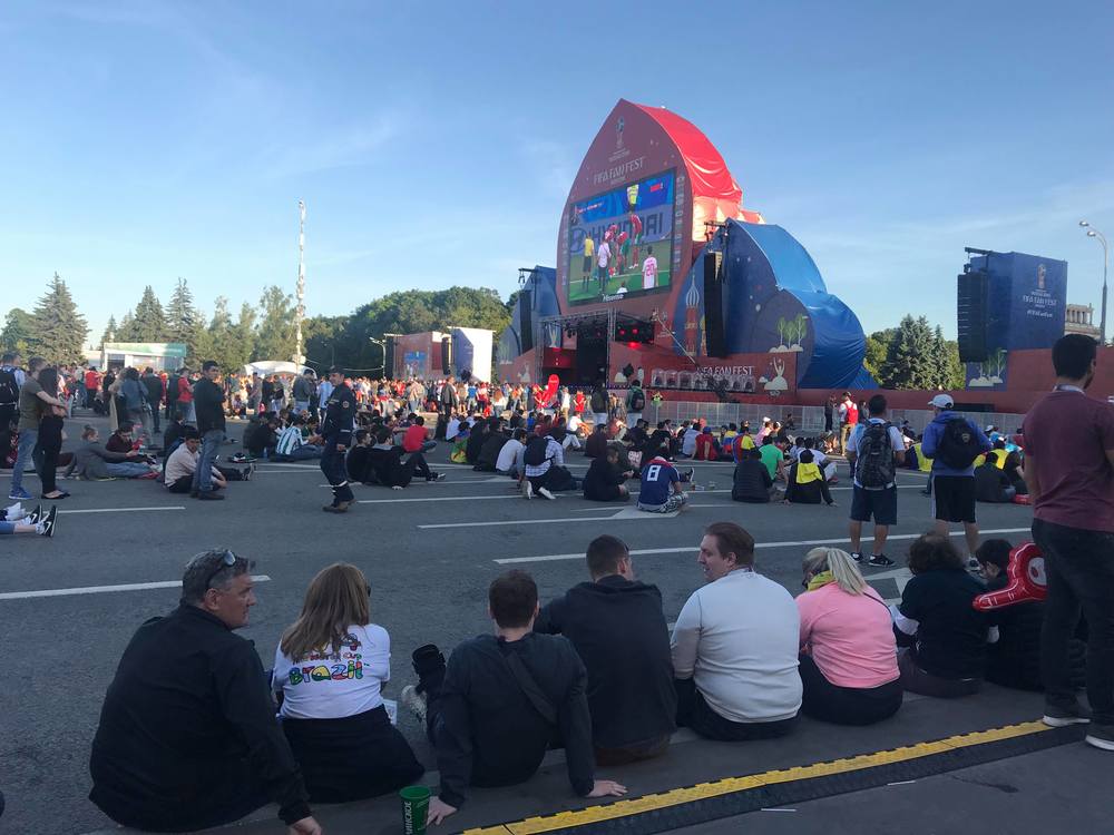 19.34 В зоне фан-фестиваля у Лужников сегодня раз в десять меньше людей передает корреспондент "Страны" из Москвы.