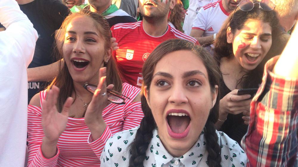 20.16 Немного ликования болельщиков сборной Ирана от специального корреспондента "Страны". Обращает на себя внимание, что женщины болеют наравне с мужчинами, а ведущий в международной фан-зоне говорит исключительно по-русски. Фантастическая атмосфера!