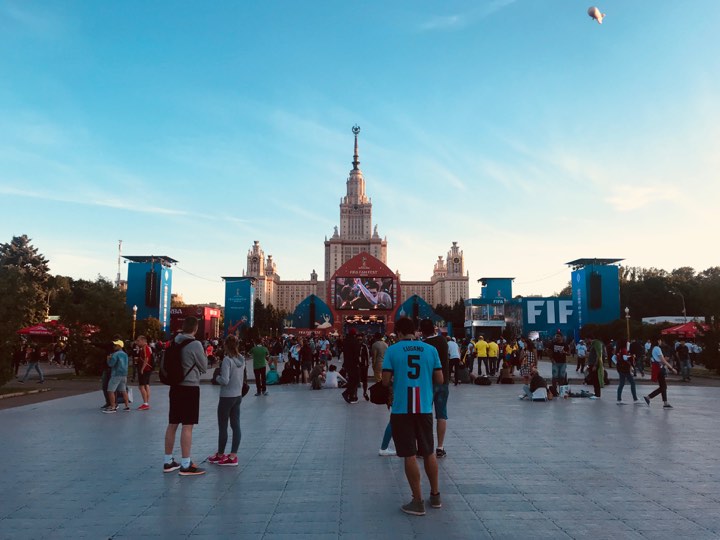 Город живет своей жизнью. Кто не знает о проведении чемпионата, мог бы и не догадаться. Похоже, футбольная жизнь крутится вокруг Лужников и зоны фан-феста. Остальная Москва, на первый взгляд, выглядит убранной, но не вовлечённой в процесс.