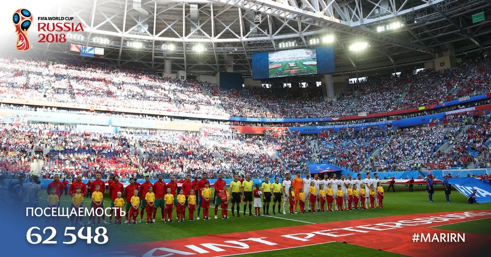 19.12 На матче Марокко и Ирана в Санкт-Петербурге присутствуют 62548 зрителей.