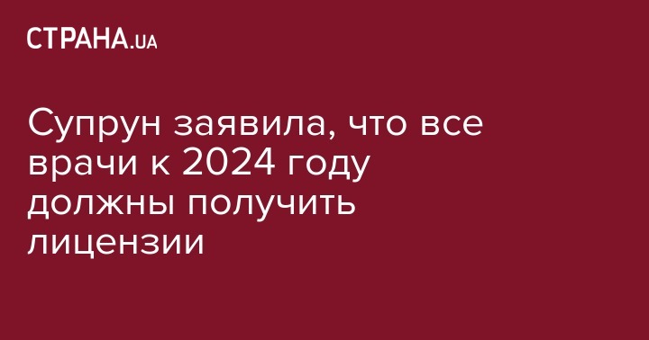 Супрун заявила, что все врачи к 2024 году должны получить лицензии