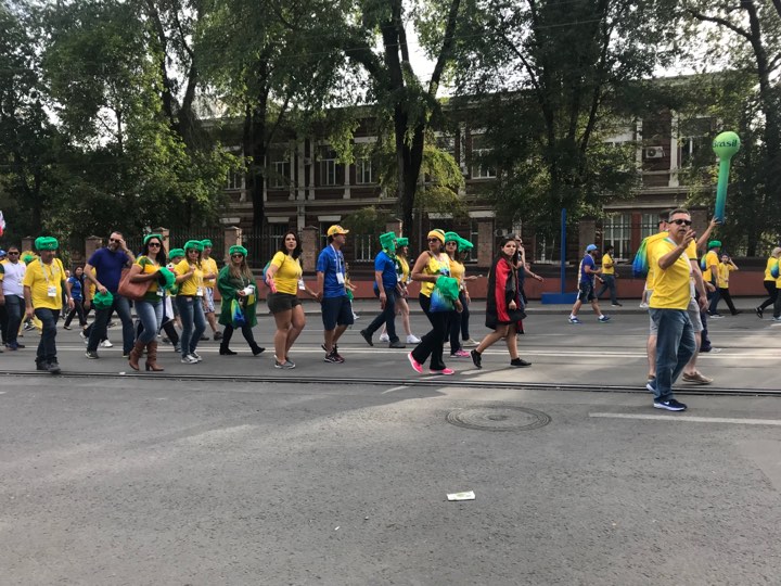 Но с точки зрения атмосферы на и особенно вокруг стадионов - это фантастика! Я никогда не испытывал таких ощущений. Просто тотальный праздник! Все дружелюбны, готовы помогать и угощать. Пляшут и поют. Латиноамериканцы устраивают настоящие концерты.