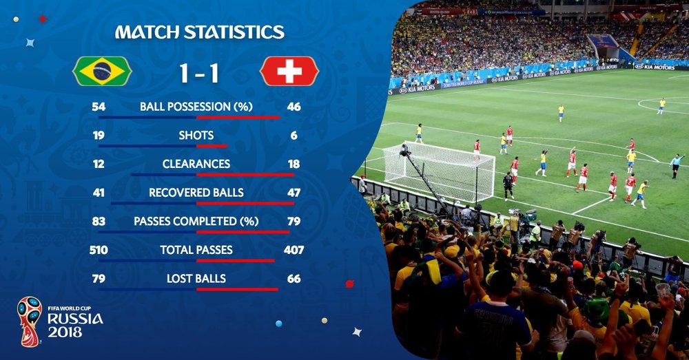 23.12 Статистика говорит о тотальном преимуществе бразильцев в поединке с командой Швейцарии, но счет - на табло.