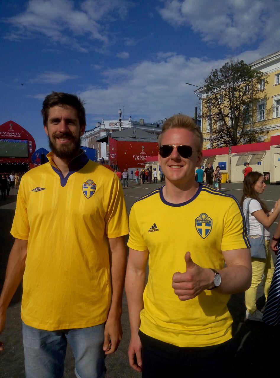 16.44 По улицам Нижнего Новгорода и в самой фан-зона города уже приличное количество болельщиков сборной Швеции, которая в понедельник играет здесь с командой Кореи.