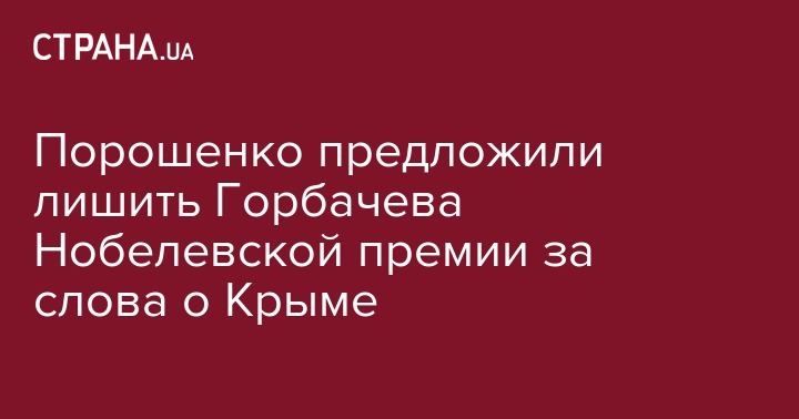Порошенко предложили лишить Горбачева Нобелевской премии за слова о Крыме