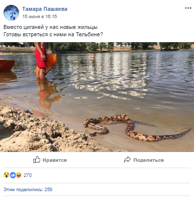 Относительно фото питонов на пляже Тельбина местные жители предположили, что это чьи-то домашние питомцы, а возле озера отдыхающие якобы видели мужчину, который нес питонов на себе, а после выгуливал их на траве.