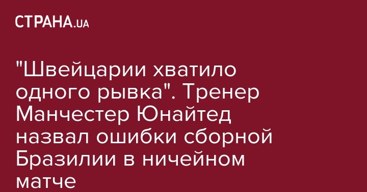 "Швейцарии хватило одного рывка". Тренер Манчестер Юнайтед назвал ошибки сборной Бразилии в ничейном матче