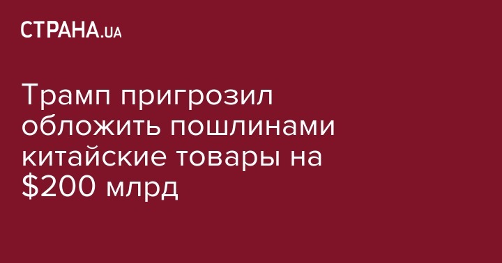Дональд Трамп поручил подготовить список китайских товаров на сумму $200 млрд, которые обложат 10%-ными пошлинами.