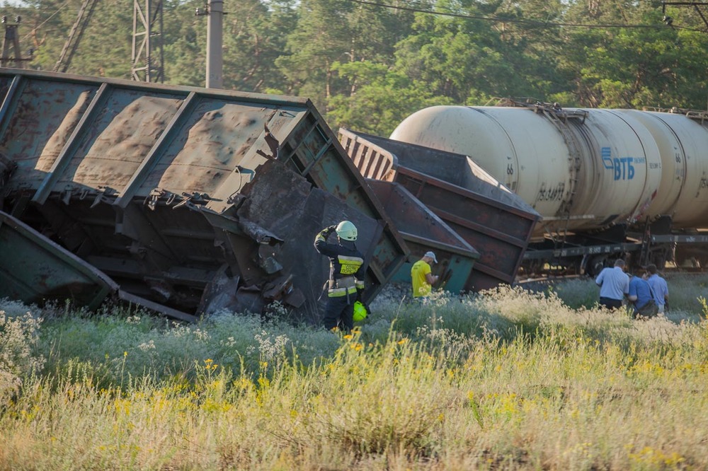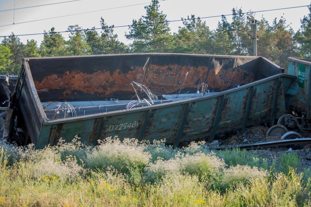 По предварительным данным, в промежутке между 04:00 и 05:00, недалеко от улицы Курсантской с рельсов сошел товарный поезд, который был гружен металлопродукцией. Несколько вагонов съехали с путей и один из них развернуло поперек.