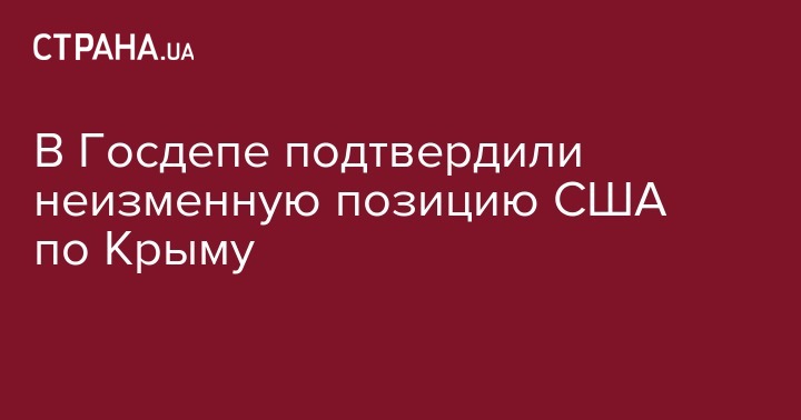 Высокопоставленный представитель Госдепартамента подтвердил позицию США, что Крым - это украинская территория.