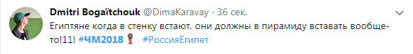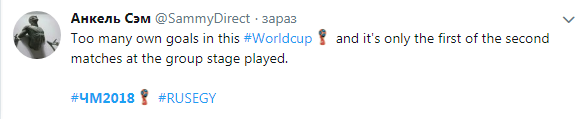 47 ГОООООООООООООООООООООООООООООЛ! АВТОГОООООООООООЛ! Россия впереди. Капитан Египта Фатхи, в борьбе с Артемом Дзюбой, коленом срезал мяч точно в угол своих ворот. А круглый к нему попал после дальнего удара Романа Зобнина.