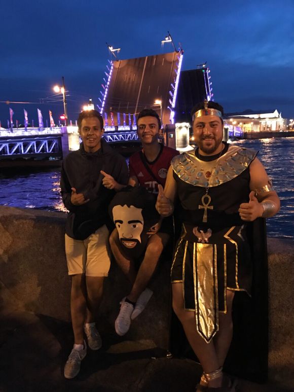 20.15 В Питер приехало много болельщиков сборной Египта, они гуляют по городу и любуются разведением мостов. Узнать их можно издалека.