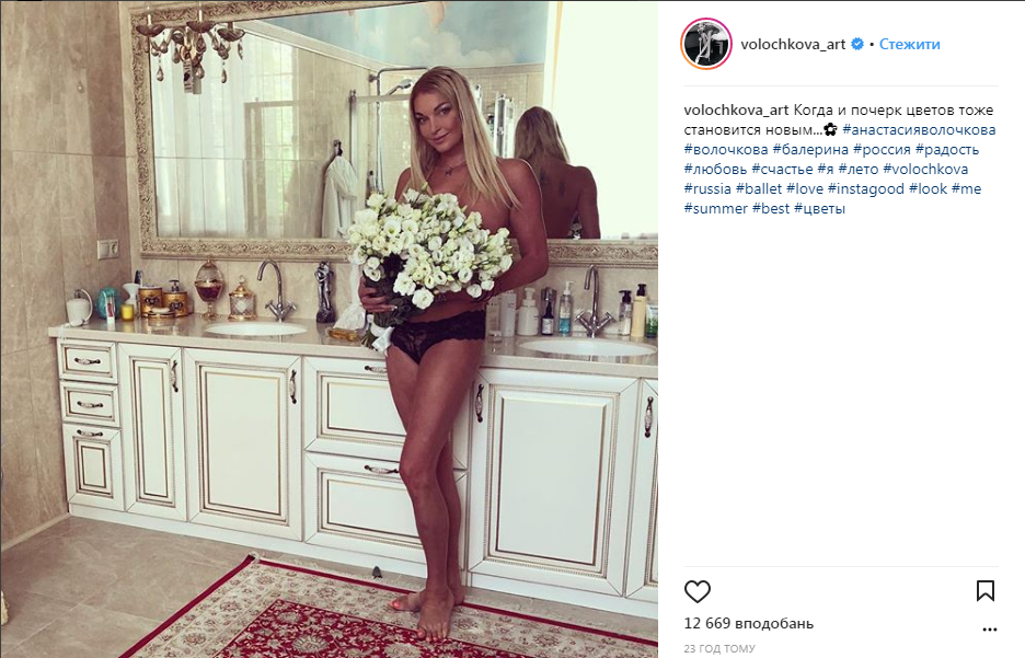 Российская балерина Анастасия Волочкова опубликовала в своем Instagram пикантное фото с очередным букетом.