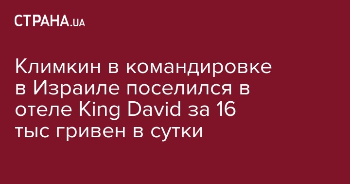 Проживание делегации в отеле обошлось почти в 200 тысяч гривен: номера для членов делегации в четырехзвездночном отеле Prima Kings в центре Иерусалима были сняты за 4,5 тысячи гривен, а для Климкина в пятизвездочном King David за 15,7 тысяч гривен.