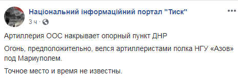 "Огонь, предположительно, велся артиллеристами полка НГУ "Азов" под Мариуполем. Точное место и время не известны", - говорится в опубликованном сообщении.