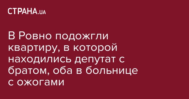 Двое мужчин пострадали в ночь на 21 июня в результате поджога квартиры в многоэтажке в Ровно. Один из пострадавших - депутат местного облсовета. Об этом сообщается на сайте областной Нацполиции.
