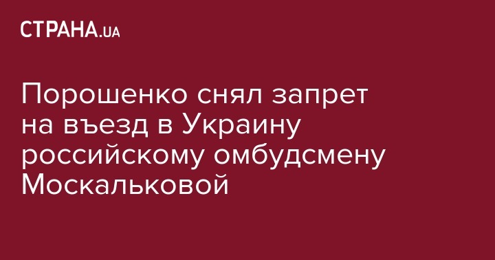 Порошенко снял запрет на въезд в Украину российскому омбудсмену Москальковой
