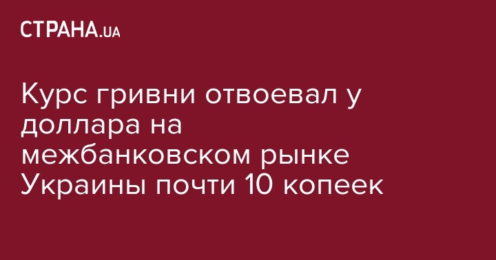 Курс гривни отвоевал у доллара на межбанковском рынке Украины почти 10 копеек