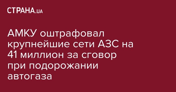 Антимонопольный комитет Украины оштрафовал крупнейшие сети АЗС на 41 млн грн за нарушение законодательства об экономической конкуренции при синхронном повышении цен на сжиженный газ в августе 2017 года.