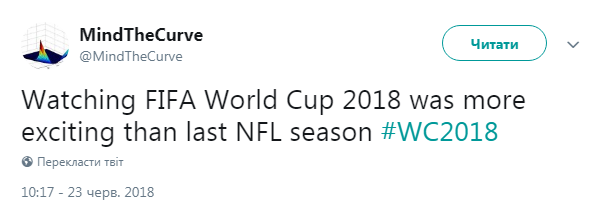 20.32 Сравнение ЧМ-2018 и Национальной футбольной лиги США (американский футбол). По мнению болельщики из Техаса действо в России - интереснее.