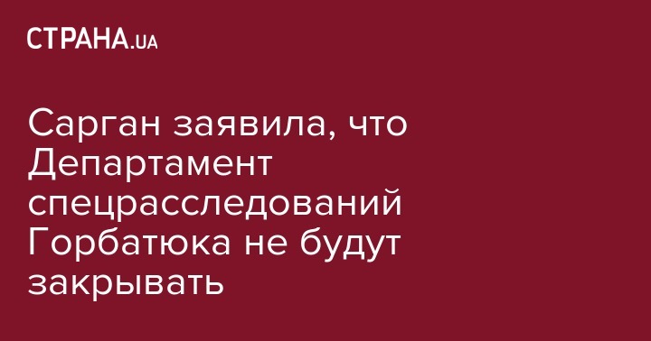Сарган заявила, что Департамент спецрасследований Горбатюка не будут закрывать