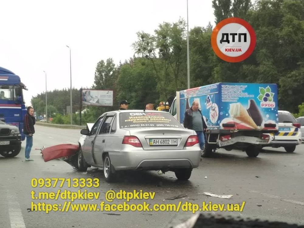 На Житомирской трассе столкнулись два грузовика с мороженым и еще три авто