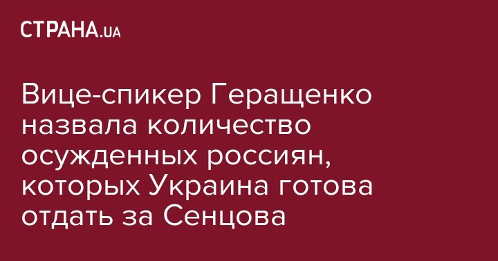 Украина готова обменять 23 осужденных россиян на заключенных в РФ украинцев, несмотря на обвинения по тяжелым статьям: терроризм, убийства, участие в войне и шпионаже. Об этом заявила первый вице-спикер Верховной Рады Ирина Геращенко на своей странице в Facebook.