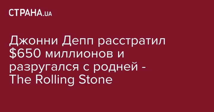 Голливудская звезда Джонни Депп расстратил свое многомиллионное состояние и рассорился с семьей. Об этом идет речь в статье журнала Rolling Stone.