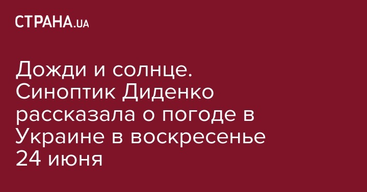 Синоптик Наталья Диденко рассказала, какой будет погода в воскресенье, 24 июня на территории Украины.