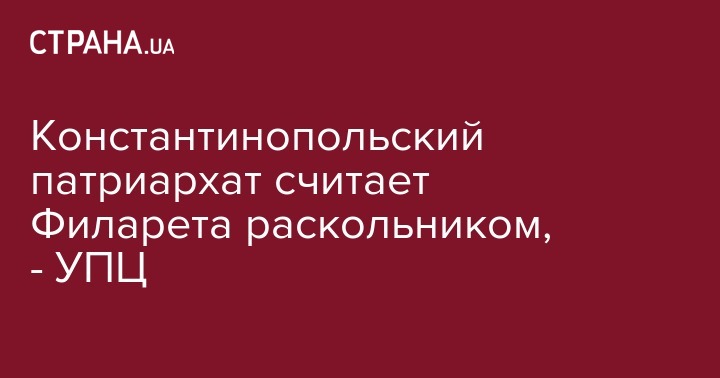 Константинопольский патриархат считает Филарета раскольником, - УПЦ