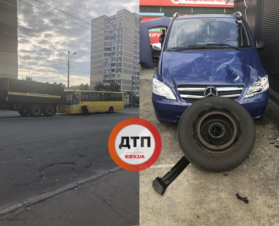 В Киеве у маршрутки отлетело колесо и едва не убило продавца на рынке. Фото