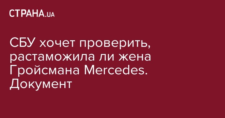 Служба безопасности Украины (СБУ) решила проверить процедуру таможенного оформления автомобиля Mercedes, который принадлежит жене премьер-министра Владимира Гройсмана Елене.