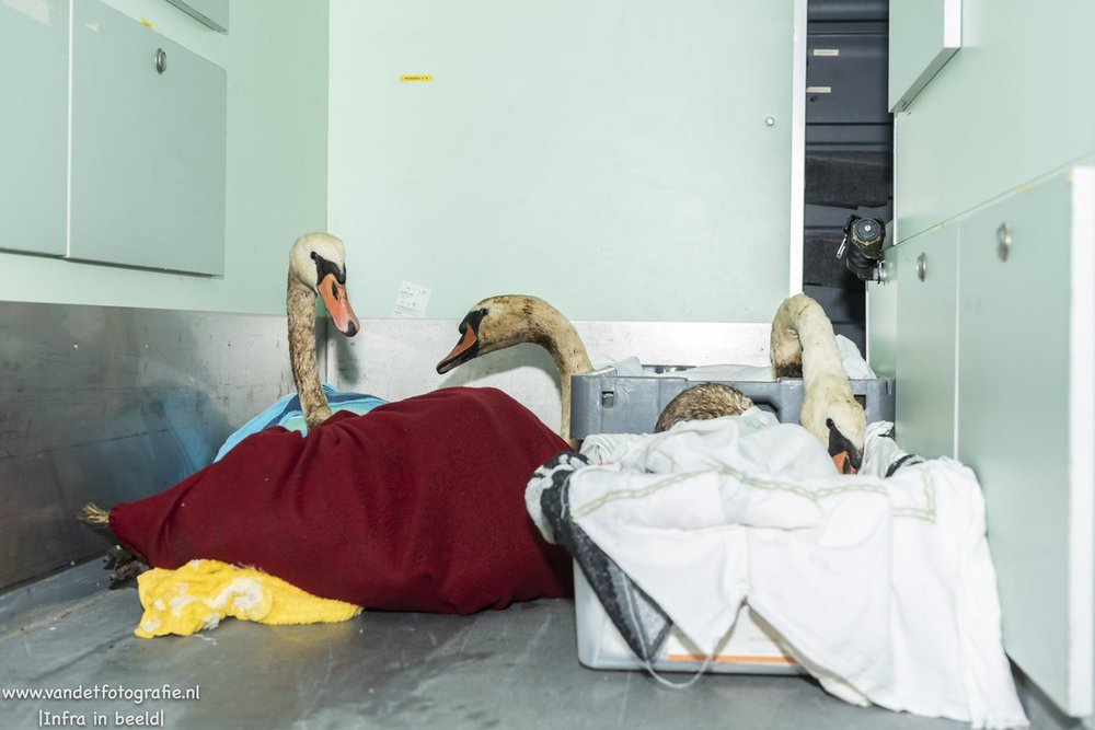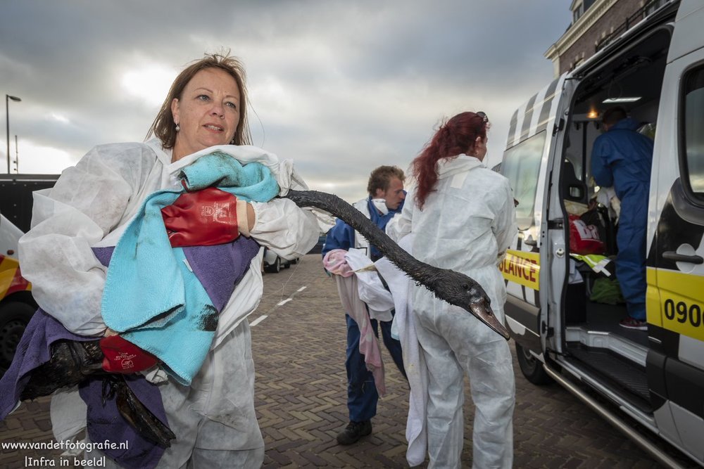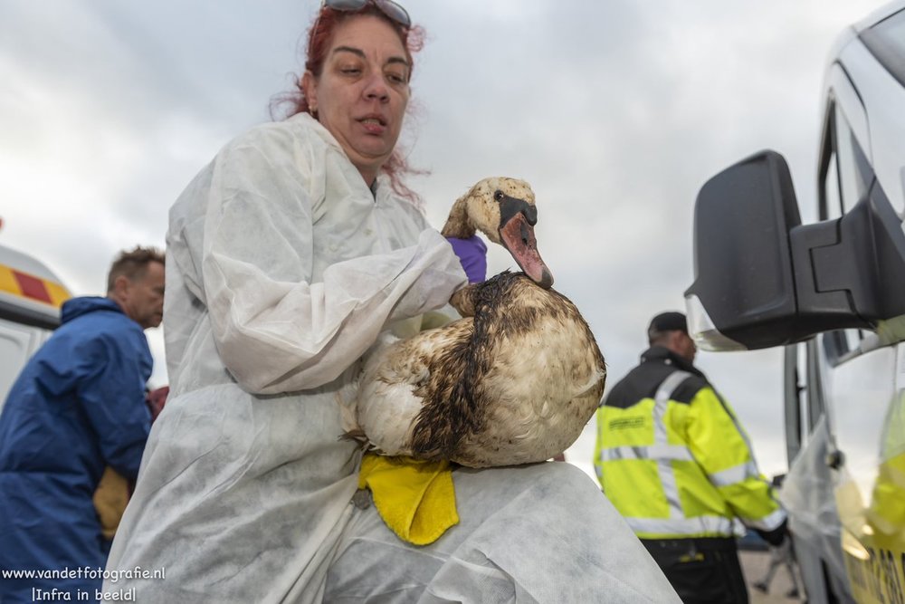 В воскресенье сотни птиц, покрытых нефтью, доставили в приюты для диких животных в Роттердаме, Гааге и Хук-ван-Холланд. Власть создала центр помощи на автостоянке в Мааслуисе.