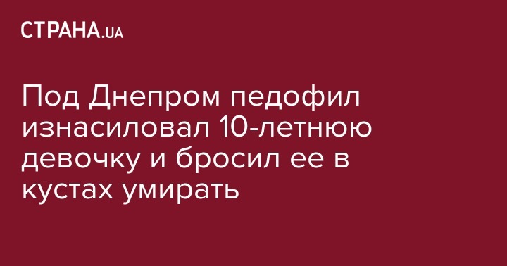 Шокирующий случай произошел в понедельник, 25 июня, в районе Новомосковска Днепропетровской области. Недавно освободившийся из мест заключения мужчина изнасиловал 10-летнюю девочку и бросил ее умирать в кустах, где раздетого и окровавленного ребенка обнаружили случайные прохожие.