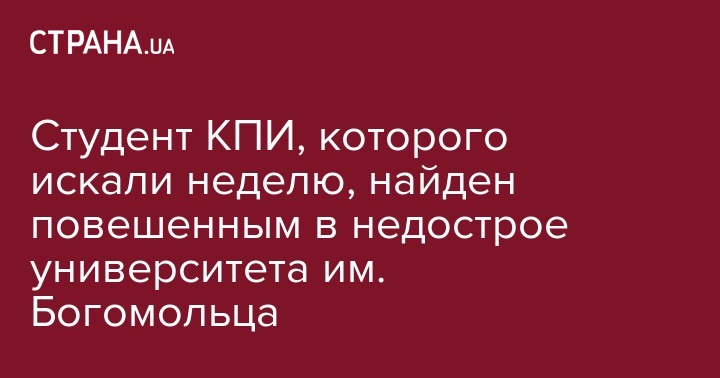 По предварительным данным, повешенным оказался пропавший неделю назад 21-летний студент факультета электроэнерготехники и автоматики (ФЭА) Киевского политехнического института Роман Ювковецкий.