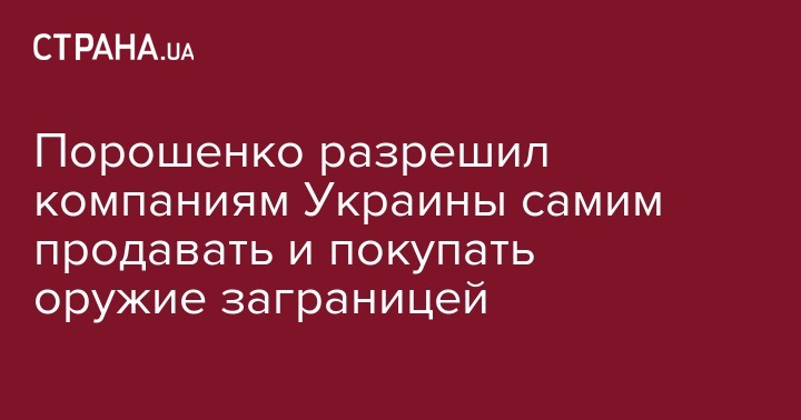 Президент Украины Петр Порошенко подписал указ о введении в действие решения Совета национальной безопасности и обороны Украины, разрешающий украинским компаниям оборонно-промышленного комплекса самостоятельно продавать оружие заграницу.