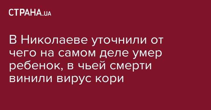 В управлении здравоохранения Николаевской облгосадминистрации уточнили, что ребенок, причиной смерти которого в Минздраве назвали корь, умер от сепсиса и полиорганной недостаточности на фоне хронического заболевания.