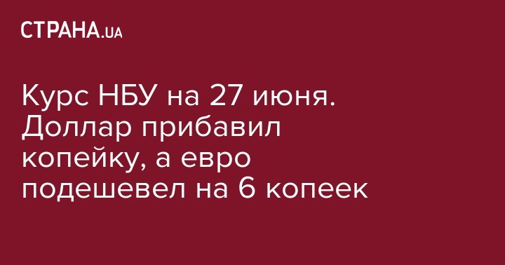 Курс НБУ на 27 июня. Доллар прибавил копейку, а евро подешевел на 6 копеек