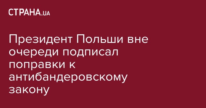 "Президент Республики Польша Анджей Дуда подписал поправки к закону об Институте национальной памяти (ИНП) после получения необходимых юридических заключений", - сказано на официальном сайте польского президента в среду, - передает "Интерфакс- Украина".