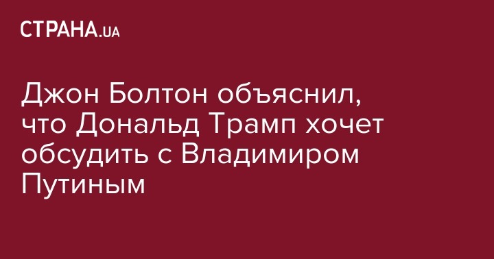 Джон Болтон объяснил, что Дональд Трамп хочет обсудить с Владимиром Путиным