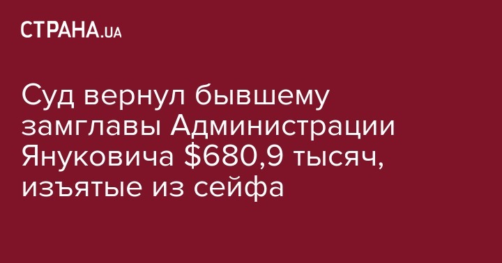 Суд вернул бывшему замглавы Администрации Януковича $680,9 тысяч, изъятые из сейфа