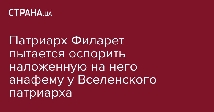 Патриарх Филарет пытается оспорить наложенную на него анафему у Вселенского патриарха