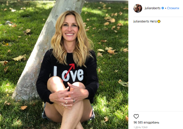 Голливудская актриса Джулия Робертс завела аккаунт в соцсети Instagram. Звезда опубликовала там первое фото, на котором она запечатлена сидящей на траве под деревом, демонстрируя фирменную улыбку.
