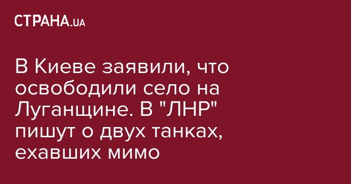 В Киеве заявили, что освободили село на Луганщине. В "ЛНР" пишут о двух танках, ехавших мимо