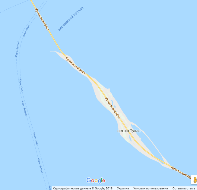Ближе к Таманскому п-ову Крымский мост написан на русском языке Фото: google.com/maps