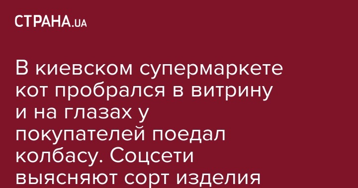 В сети пользователи обсуждают видео, снятое в киевском супермаркете "Континент" на Виноградаре. На нем запечатлено, как огромный полосатый кот с аппетитом поглощает колбасу, сидя прямо в витрине, удобно расположившись на мясной продукции. Ролик размещен на странице dtp.kiev.ua в Facebook.