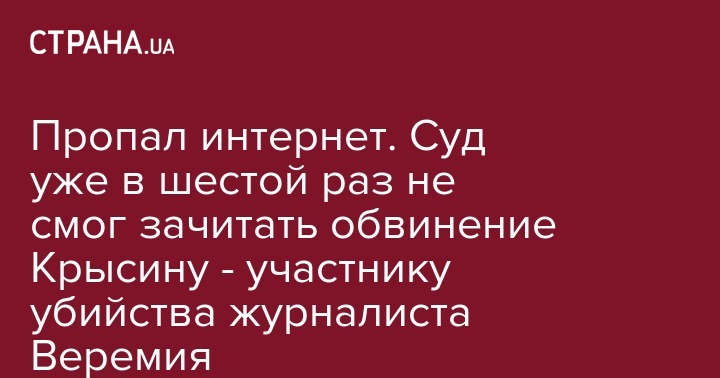 Фигурант в деле об убийстве журналиста газеты "Вести" Вячеслава Веремия 2014 года - Юрий Крысин, которому дали 5 лет тюрьмы, не смог принять участие в судебном заседании, поскольку в Дарницком райсуде пропал интернет.